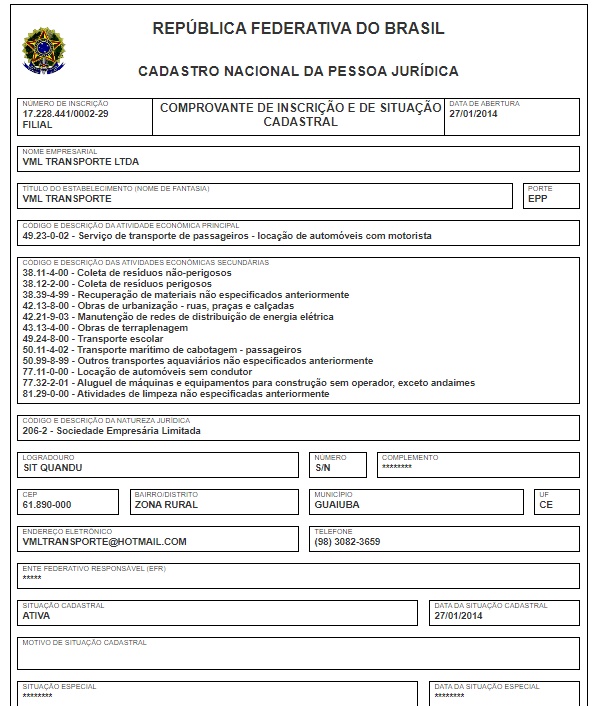 A contratação da empresa VML TRANSPORTE EIRELI, localizada na